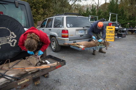 Figure 3. DWR biologists sampling deer at a check station in Virginia (photo credit: DWR).